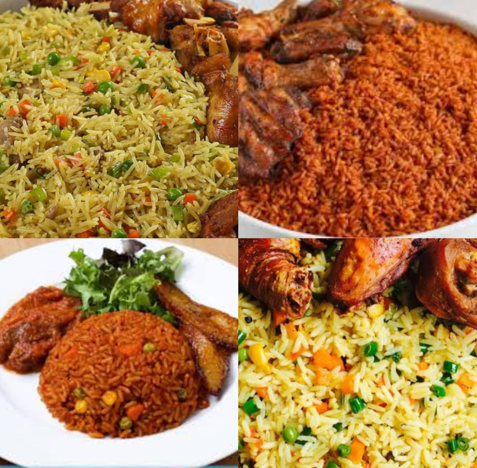 Our Jollof Rice is a delicious West African classic — cooked in a spicy tomato blend, seasoned to perfection, and served with love. It’s smoky, savory, and full of that nostalgic homemade taste.Prefer something milder but just as flavorful? Our Fried Rice is a colorful mix of vegetables, spices, and perfectly stir-fried rice, giving you a tasty, satisfying experience in every bite.Whether you're planning a party, a family gathering, or just craving something special for lunch, our rice dishes are guaranteed to impress!
